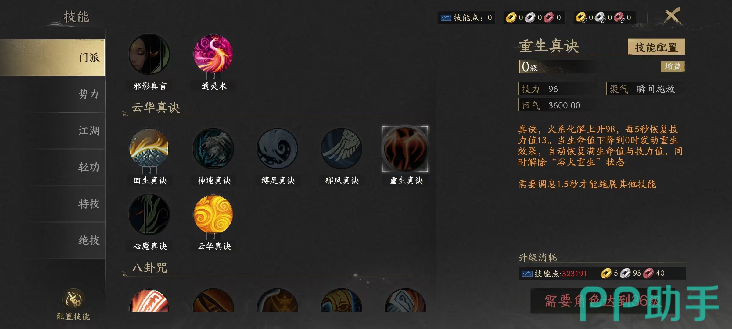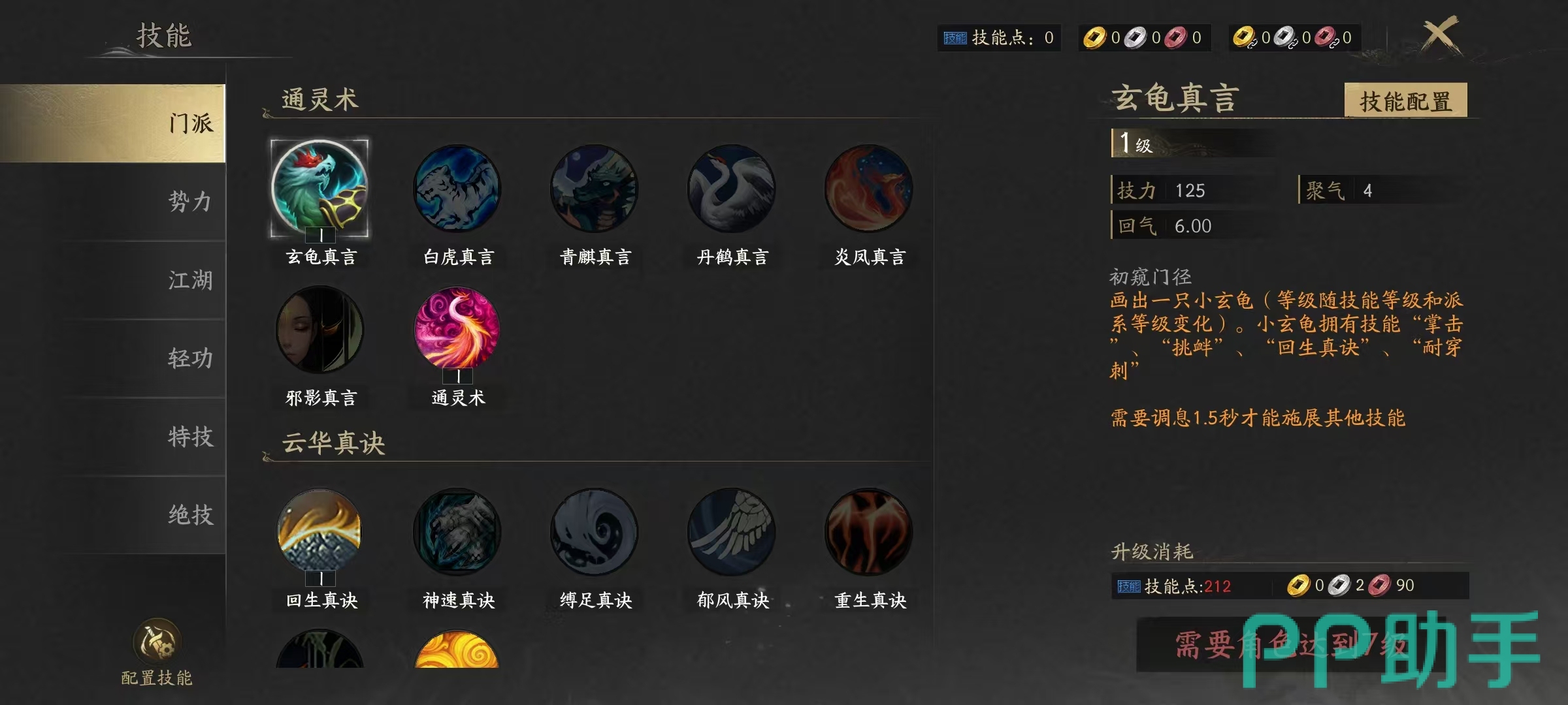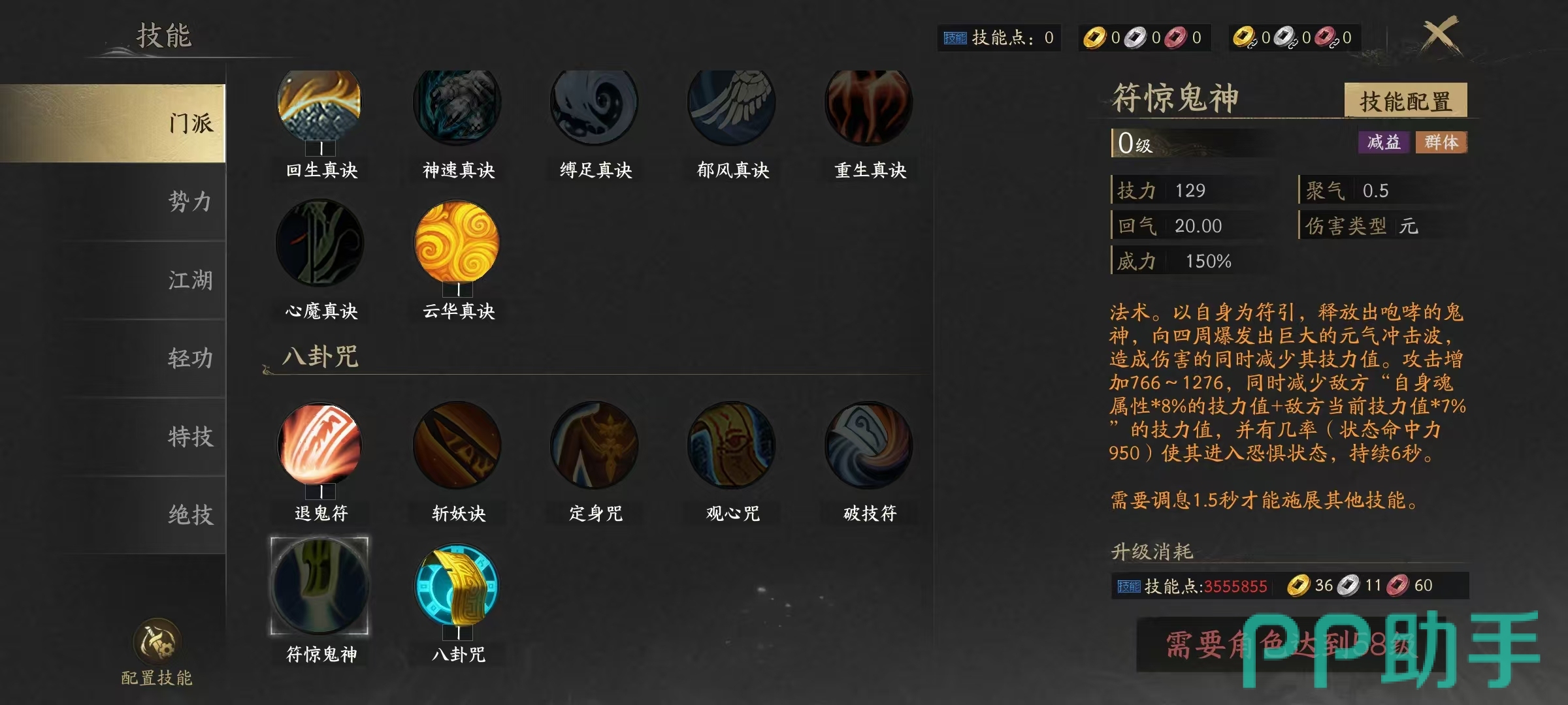 技能体系划分为三大类:通灵术、云华真诀与八卦咒。通灵术以召唤为核心,涵盖玄龟真言(提供护盾与减伤)、白虎真言(强化物理压制)、丹鹤真言(提升移动与闪避)等,所召灵兽各具功能倾向,可根据副本机制或战场局势动态切换。云华真诀侧重辅助增益,如回生真诀(持续恢复)、神算真诀(提升命中与会心)、重生真诀(短暂无敌)、心魔真诀(干扰敌方状态),显著增强团队续航与应变能力。八卦咒则主攻范围爆发,代表技能“符惊鬼神”可对周身目标造成高额法术伤害并附带击退效果,是清理小怪与打断施法的关键手段。所有技能随角色等级逐步解锁,但受冷却时间约束,需结合实战节奏进行合理轮换。