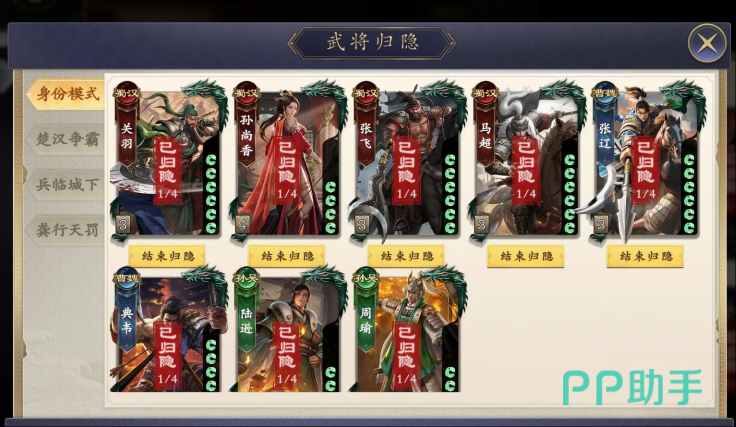 在《名将杀》这款策略卡牌对战游戏中,武将的解锁进度直接影响玩家可部署的战术体系。不同武将具备差异化定位:部分适合作为持续输出的核心主力(主C),另一些则更擅长前期节奏铺垫与资源调度。这一设计催生了关键机制——“归隐”。所谓归隐,并非被动退场,而是玩家依据实时战况主动触发的高阶防御策略,其本质是通过状态切换实现战术规避与生存强化。