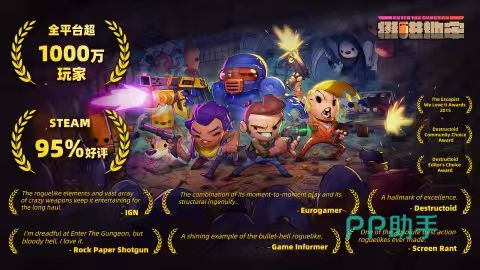 以弹幕射击为主要玩法的《挺进地牢》为玩家提供了一种独特的肉鸽体验。玩家需要在封闭的房间里不断移动,一边精准射击一边躲避成片的子弹。关卡结构是随机生成的,房间类型、奖励内容都会变化,武器种类繁多,不同的枪械数值差别很大,使玩家不断适应新的战斗方式。游戏整体节奏快,容错率低,但是每次成功清理房间都会产生很强的成就感。失败之后再从头开始的过程也不能忽视,玩家会在一次次的尝试中学会生存。