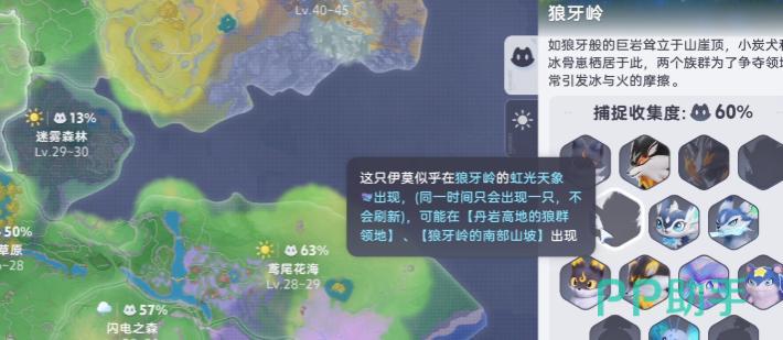 闪电貂同样拥有三重形态体系:基础形态广泛分布于山林带;山林形态特指鲸落浅滩右侧巨型石碓区域;虹光形态则需满足三项条件——完成对应进化分支、击败指定首领、并确保虹光天气已生效。相较其他稀有变体,虹光伊莫的位置稳定性较高,多数可在目标点位反复遭遇,仅受捕捉冷却限制,大幅降低空手概率。