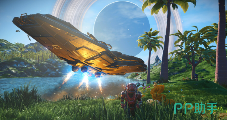 本作最核心的魅力在于其基于程序化生成技术构建的无限宇宙——超过1844亿亿颗风格迥异的星球可供探索。玩家可驾驶飞船跨越星系、着陆陌生天体,每颗行星拥有独立的大气成分、重力参数、生物群落与地质结构。部分星球覆盖幽暗瘴气带,另一些则呈现浮空岛屿、巨型湿地或高浓度稀有矿物沉积区。地表遗迹中散落着远古文明“先驱者”的线索碎片,配合动态天气、昼夜循环与真实物理引擎,共同构成一场沉浸式太空生存叙事体验。