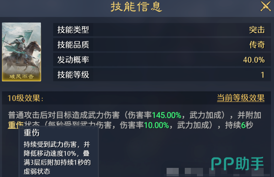 孙尚香作为主将,其自带战法虽单段伤害中等,但具备显著的触发叠加机制:每存在1层我方增益或敌方减益状态,即可额外发动1次攻击,两类状态各自最多叠加4次,理论最高可触发9次普攻。配合“溃逃”类无视防御效果,整体爆发效率远超表面数值。