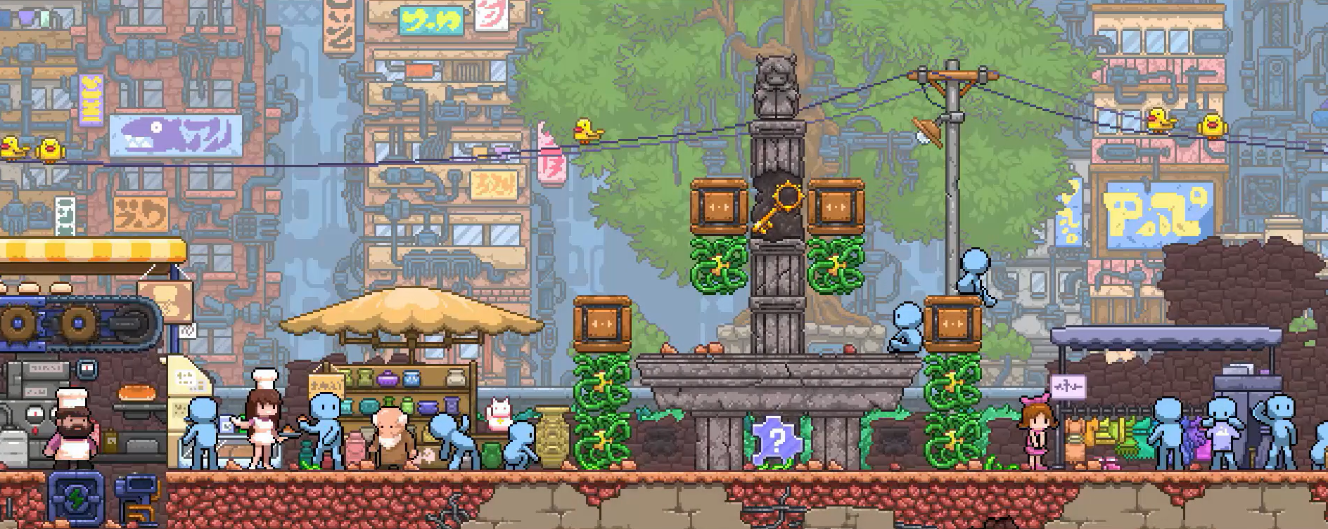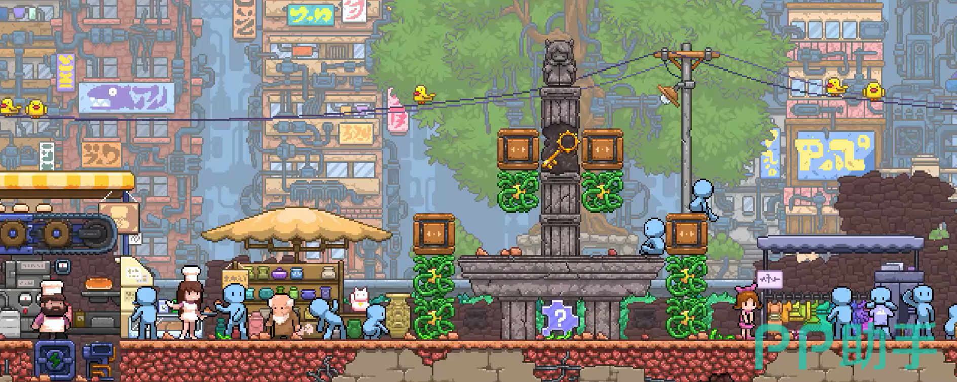 一款以双世界解谜为核心的像素风冒险作品。主角蕾特娜身处两个相互映射又彼此干涉的平行维度:一个色调冷峻、机械感强烈;另一个则温暖柔和、充满有机纹理。玩家需在两界间同步操作、切换视角,利用某一边的动作改变另一边的地形、机关或NPC状态。全篇无文字指引,所有线索均藏于环境细节、光影变化与物品交互反馈之中,考验观察力与逻辑推演能力。