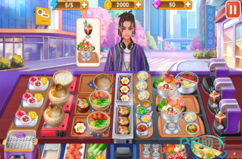 本作采用资源无限供给机制,所有基础食材、高级原料及烹饪器械均随时可用,专注考验玩家对火候控制、工序排序与节奏管理的理解。通关后不仅解锁新菜谱,还能积累声望值,推动店铺升级与连锁扩张,实现从单店老板到餐饮集团掌舵者的成长路径。