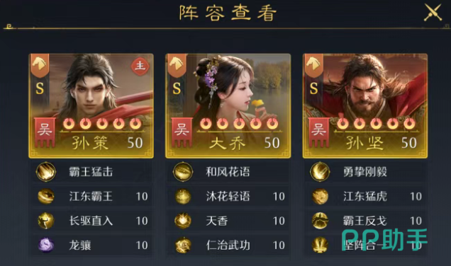 平民及微氪玩家当前主流选择为江东体系:以大乔为主将,其主将技为全体男性武将提供40%伤害加成;孙策承担吸血续航,孙坚提供威压控场,三者协同可显著压缩兵损。若暂无大乔,可用蔡文姬替代,但需确保治疗类技能等级及时跟进,避免续航断裂。