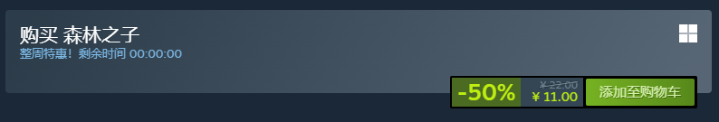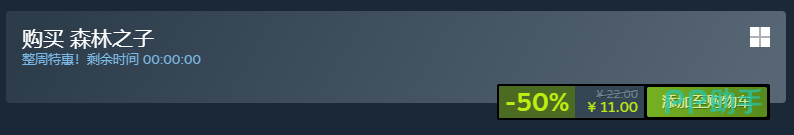 该游戏目前在Steam平台官方定价为22元人民币,正享受五折限时特惠,折后售价仅为11元。此价格已刷新本作开售以来的历史最低纪录。值得注意的是,Steam冬季特卖活动临近,届时《森林之子》存在进一步降价可能,建议玩家密切关注平台首页公告及商店页面更新,把握最优入手时机。