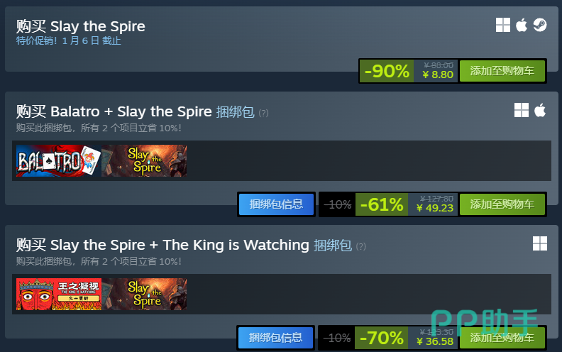 《杀戮尖塔》标准版Steam国区原价为80元。回顾近年促销记录,2025年春季特卖曾创下21.25元的阶段性低点,相当于2.7折;日常大促则多维持在28元左右区间。而本次2025年Steam冬季特卖(12月18日开启)所释放的价格信号尤为强烈——游戏直降至8元,即原价的1折。该价位不仅刷新全周期历史纪录,更接近单次轻度消费门槛,仅相当于一杯基础款饮品的价格,对尚未接触过本作的新玩家而言,试错成本几乎趋近于零。