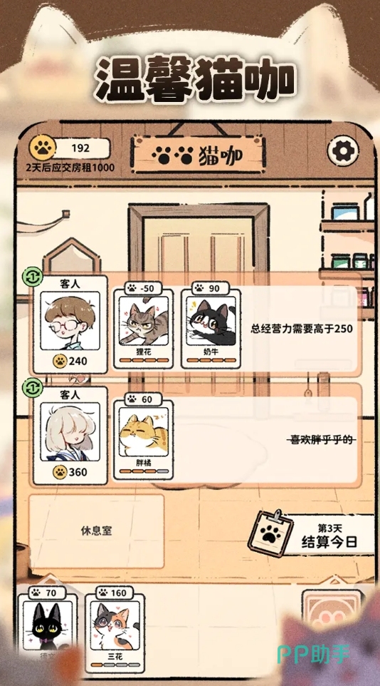 本作融合模拟经营与民俗惊悚题材,玩家将经营一家兼具温情与诡谲气息的猫咪咖啡馆。在接待顾客、投喂猫咪、布置空间等日常经营之外,必须严格遵循隐藏于环境中的“怪谈守则”:例如不可直视镜中倒影、不可在午夜为黑猫拍照、不可重复播放同一段录音……一旦违规,影子怪便会悄然逼近。生存与经营双线并行,房租压力、顾客满意度、猫咪健康值共同构成动态挑战系统,营造出张力十足的沉浸式体验。