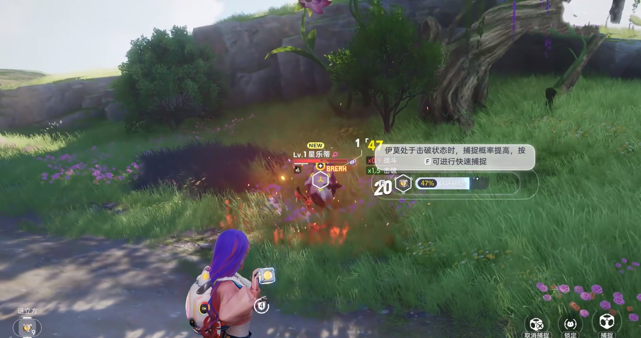 新手训练师可在游戏初始教学关卡中直观掌握该技巧——首只引导捕捉对象即为藏身于岩缝中的花芽蟹,系统会以高亮提示框明确标注“推荐使用背袭”,并同步播放视角切换动画,演示如何从侧后方完成锁定。此环节为后续野外实战的重要认知基础。