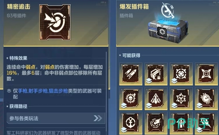 插件按品质划分为蓝、紫、金三档,蓝色最易获取,金色最为稀有,紫色居中。但品质并非决定插件价值的核心因素——是否契合武器技能逻辑才是搭配首要准则。玩家需先梳理武器的主动技能触发方式、被动效果生效条件及加成维度(如弹药管理、充能节奏、距离衰减、伤害倍率等),再针对性选择对应插件位上的功能模块,实现技能链闭环与战力增益叠加。