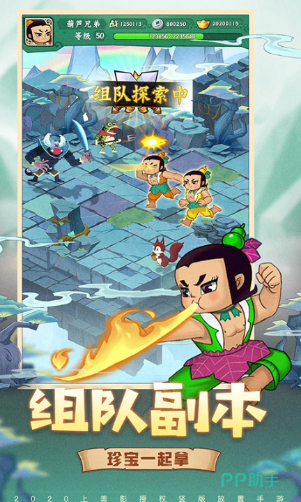 改编自上海美术电影制片厂经典动画,严格遵循七兄弟各具异能、性格鲜明的原始设定。游戏采用回合制策略战斗框架,强调角色间技能联动与属性克制——如大娃力量破防、二娃千里眼探图、六娃隐身规避伤害等机制均被深度融入关卡设计。剧情章节完整复刻“蛇蝎二妖作乱”“营救爷爷”等核心桥段,美术风格延续水墨剪纸质感,UI界面亦融入传统纹样元素,强化文化辨识度。