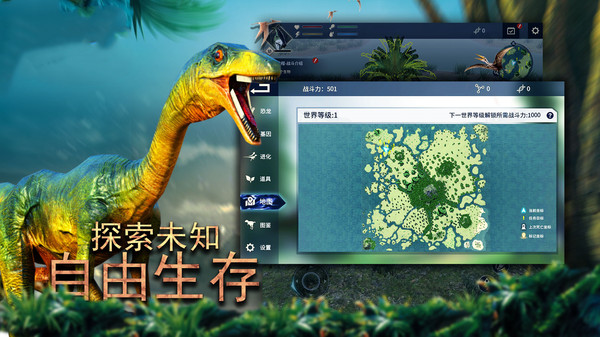 融合放置经营与即时战斗双线玩法,构建高度拟真的侏罗纪生态环境。游戏强调生存压力下的动态成长逻辑——玩家需在恶劣气候、资源匮乏与天敌威胁并存的条件下,持续强化恐龙个体战力与群体协作能力。场景建模精细还原白垩纪地貌特征,配合写实音效系统,营造身临其境的远古战场氛围。