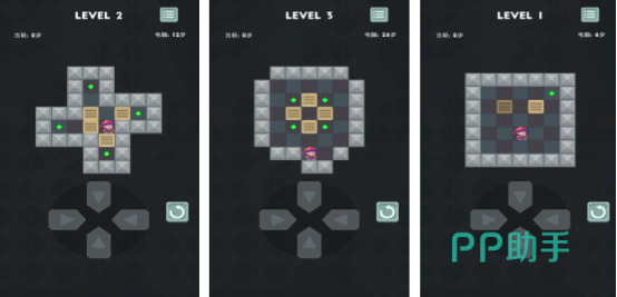 基于经典Sokoban机制开发,全关卡遵循“单次推动”原则:每个箱子仅能被推动一次,不可拉动或重复推动。初始关卡仅含2个箱子与基础地形,随进度提升逐步引入冰面、传送带、多重目标点等复杂要素。共包含数百个精心编排的谜题,强调空间预判与步骤规划能力,是锻炼逻辑思维的优质选择。