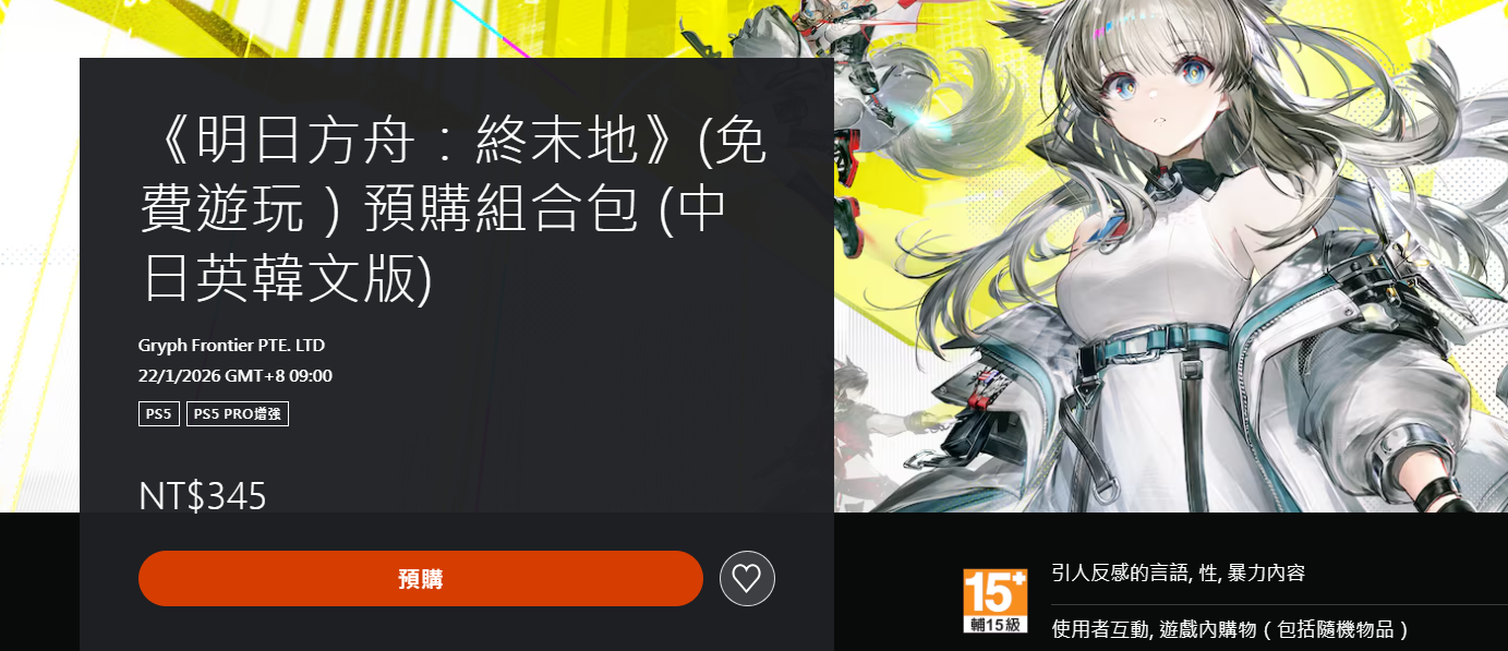 根据开发商与发行方联合发布的正式公告,《明日方舟:终末地》本体采用完全免费游玩(Free-to-Play)模式,无强制付费门槛。同步开放预购服务,其中PS5平台专属组合包定价为345新台币(折合约人民币78元)。需特别注意:不同地区及终端商店(如PlayStation Store、App Store、Google Play、Steam等)可能存在本地化定价差异,建议玩家以游戏官网或对应平台商店页面公示价格为准,避免因汇率或区域政策产生理解偏差。游戏已确认于2026年1月22日全球统一上线,登陆平台包括PC(Windows)、iOS、Android及PlayStation 5四大生态,并全面支持跨平台账号体系——即同一账号在任意设备登录,角色进度、资源储备、成就记录等核心数据实时同步、无缝流转。