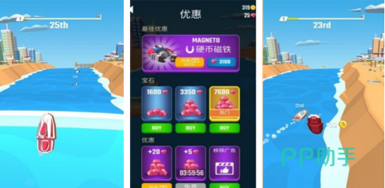 极简操作设计,适配全年龄段用户。单指点击即可触发加速,滑动调整航向,系统自动匹配平衡逻辑,大幅降低上手门槛。赛道覆盖晶莹浅滩、深蓝远洋、峡湾窄道等多种地理形态,每处水域具备独特流速与反射特性。玩家可在无压力环境下享受乘风破浪的畅快感,亦可通过挑战模式解锁隐藏航线与稀有艇体。