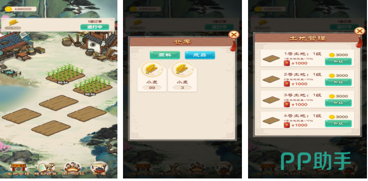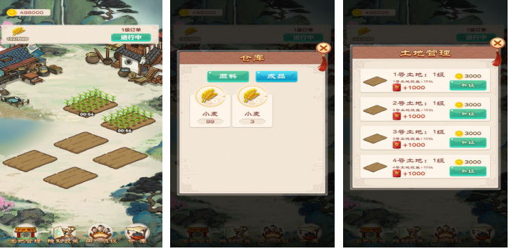 以中国古代农耕文明为背景,本作打造了一套符合传统节气规律的种植循环体系。玩家可在水墨风格渲染的江南水乡中开垦田地、育苗灌溉、收获储藏,并随四季更迭推进作物生长周期。游戏弱化数值压力,强化操作反馈与视觉韵律,辅以古风音效与手绘UI,让种田行为本身成为一种沉浸式疗愈体验,契合现代用户对返璞归真生活方式的心理诉求。