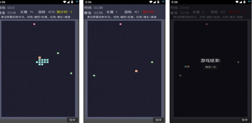 这是一款专为移动端优化的竖屏单机贪吃蛇游戏,严格遵循原始规则:控制绿色蛇身吞食红色食物点,每吃一个即增长一节,速度逐步提升。界面无冗余元素,仅保留基础方向键与实时长度计数,操作响应迅速,适配单指滑动或虚拟按键两种模式。无时间限制设定,允许玩家自由调节节奏,适合初学者练习走位或用于解压放松。