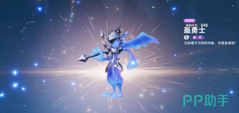 该问题为剧情铺垫,两个选项结果一致:系统将告知,此前守在门前的胆小盔曾奋力穿越风暴,却因力竭无法撞开岩石,已被传送离开,生死未卜。紧接着,系统将再次发问:“你是否仍保有成为真正勇士的决心?”此时请选择“拔剑”选项,即可触发专属动画,大眼盔完成形态跃迁,正式进化为盔勇士。