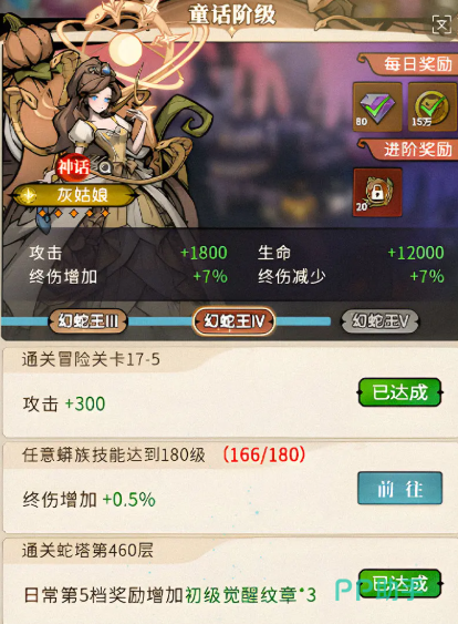 在阵容初步成型后,需同步开启三大核心成长模块:“童话阶级”“蛇塔”“狩猎巨蛇”。其中,“童话阶级”为前期必做成长线,完成阶级任务可提升角色基础属性并解锁新功能;“蛇塔”依据当前战力动态匹配关卡,通关奖励包含大量蛇灵装备,是战力跃升的关键途径;“狩猎巨蛇”为周期性BOSS挑战活动,每日限3次挑战机会(每周六、日暂停开放),伤害排名决定龙纹系统养成材料的获取数量,而龙纹系统可全面提升角色生命、攻击、防御等基础数值。