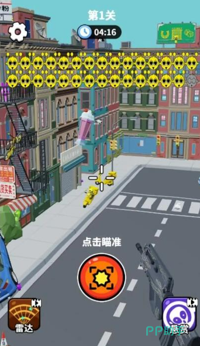 本作强调环境观察与动态预判能力。玩家需在有限时间内识别并击中隐藏于实景背景中的外星目标,系统提供多档倍率狙击镜、可切换弹道补偿模式及辅助定位放大镜等工具。武器库涵盖高精度远距步枪、中距离突击型连发枪等多种配置,配合场景内随机刷新的战术道具,提升单局操作深度与重复可玩性。