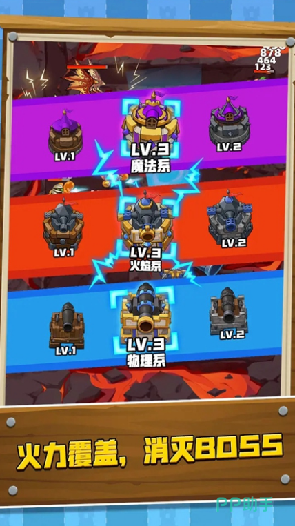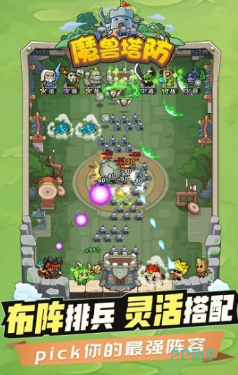 本作采用模块化塔防架构,提供12类基础防御塔(含箭塔、投石塔、火焰塔、冰霜塔、雷击塔等),每类塔拥有3级科技树与5种可替换炮台组件。战场地形支持动态破坏系统:玩家可主动引爆城墙段制造缺口诱导敌军路径,亦能修复受损工事改变行军节奏。怪物波次按“青铜—铁器—精钢”三级装备迭代,对应不同抗性属性与特殊技能机制。