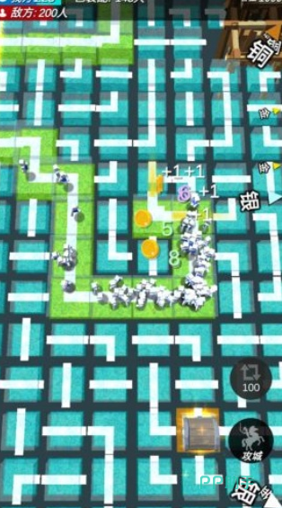 采用16×16像素网格作为最小战术单元,全地图由256个可编辑格子构成。玩家通过拖拽方式部署兵种,每个格子支持叠加至多3层防御配置(如底层箭塔+中层拒马+顶层火油桶)。敌军AI基于A*算法动态寻路,会主动规避高伤害区域并集结突破薄弱点。经营系统包含农田产出、矿场开采、兵营征募三条独立资源链,所有建筑升级均需满足地形适配度阈值。