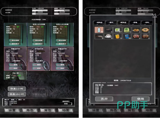 采用极简像素美术风格,主打离线单机体验。玩家作为无名流浪者,在昼夜循环系统下管理体力、饱食度与水分值。白天用于勘探废墟、翻找罐头与医疗包;夜晚则需加固营地、设置陷阱并应对成群移动的夜行型丧尸。武器系统包含撬棍、燃烧瓶与自制弓弩,每种装备影响战斗节奏与资源消耗速率。