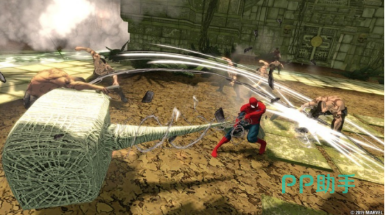 基于漫威官方正版授权开发,完整复刻纽约市核心城区地理结构与昼夜光影变化。玩家可在自由探索模式中攀爬玻璃幕墙、摆荡跨越街区、触发随机事件任务。战斗系统融合轻重攻击组合、蛛网束缚、环境互动(如掀翻车辆、引爆油桶)及技能树成长体系,支持近身连招与远程蛛网投射双线操作逻辑,适配不同操作习惯的玩家群体。