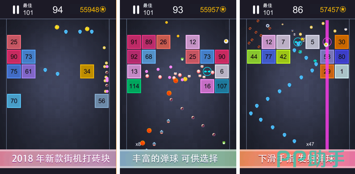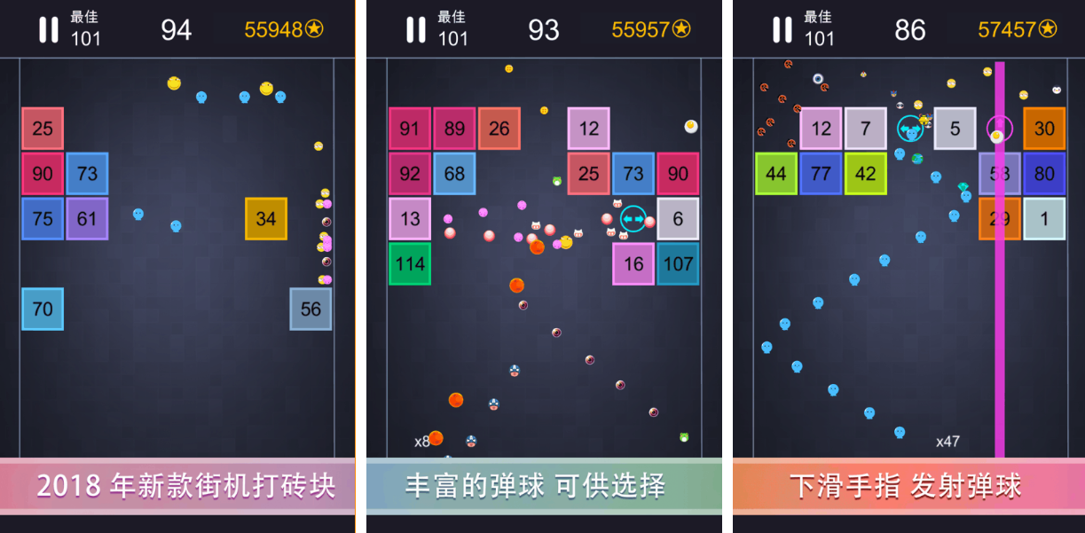 这是一款基于传统打砖块玩法深度打磨的物理向休闲游戏。玩家通过拖拽控制弹球发射角度与力度,击碎不同属性砖块可触发特效反馈——如分裂球、穿透击、慢动作等。内置超30款可切换弹球皮肤,不影响数值平衡,纯属视觉个性化选项。关卡总数达120+,每关砖块排列逻辑独立,色彩系统采用高对比度RGB方案,提升视觉清晰度与操作辨识效率。
