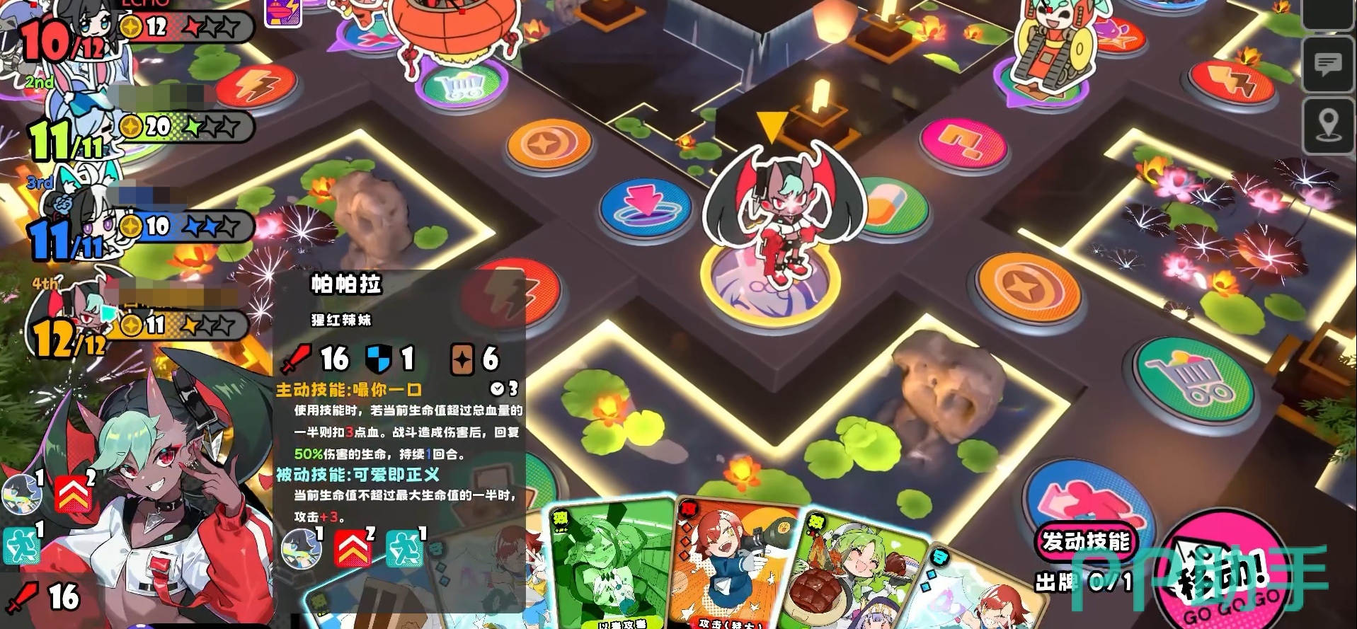 帕帕拉的核心输出逻辑围绕“血线调控”构建。主动技能【嘬你一口】具有双重触发条件:当自身当前生命值高于最大生命值50%时,施放该技能将强制扣除3点生命;成功造成伤害后,则立即恢复相当于本次伤害50%的生命值,效果持续1回合。被动技能【可爱即正义】则设定了一道刚性阈值——其生命值上限被锁定在最大生命值的50%,但作为补偿,攻击力恒定提升3点。