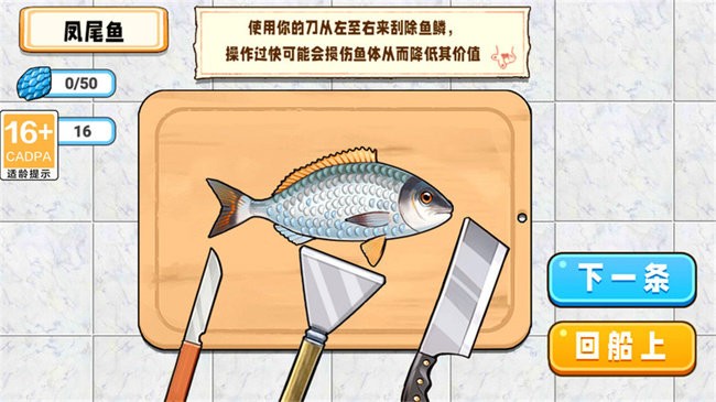 融合经营模拟与动作操作玩法。玩家操控渔船在开放水域巡航,通过调整钩深、摆动频率匹配目标鱼群习性,提升单次垂钓成功率。收获后进入加工台,刮鳞过程引入压力反馈机制——刮擦过快易损伤鱼肉,过慢则降低效率。处理完毕的鱼类可直供餐厅菜单,解锁新菜品、升级厨具并拓展顾客口碑等级。