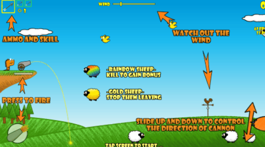 设定于开阔山地环境,成群绵羊持续涌入画面并制造混乱。玩家需操控炮台系统进行精准打击,每种弹药具备差异化效果——如冰冻弹延缓移动、分裂弹一次击中多只、震爆弹清空小范围等。初始开放基础弹种,后续通过通关关卡逐步解锁全部20余种弹药类型。操作响应灵敏,反馈强烈,兼具策略性与爽快感。