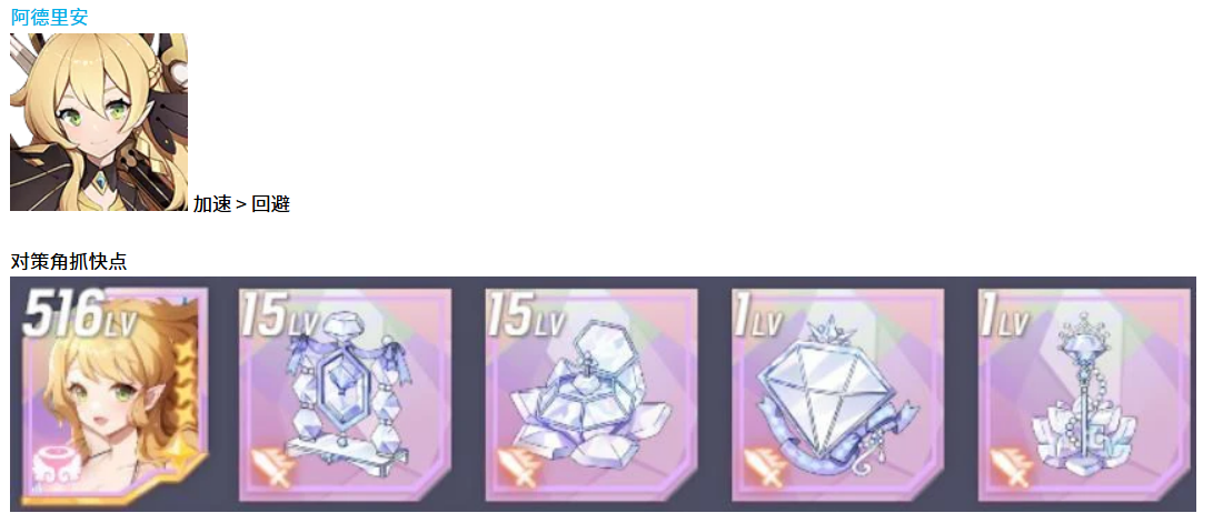 最后说说阿德里安,这个角色比较特殊,他在队伍里更多是起到牵制作用。配装重点是加速和回避,加速还是第一位,回避次之。阿德里安的技能设计偏向控制和干扰,需要他能快速出手去打乱对方节奏,所以加速属性必须拉满。回避属性则是为了提高他的生存能力,毕竟作为一个对策角色,如果太容易被集火秒掉,那根本发挥不了作用。装备选择上可以考虑速度套搭配回避散件,主要目标就是让阿德里安又快又灵活。在实战中,阿德里安的定位就是抢先手,用技能去限制对面关键角色的行动,这种战术价值比单纯的伤害输出要高得多。
