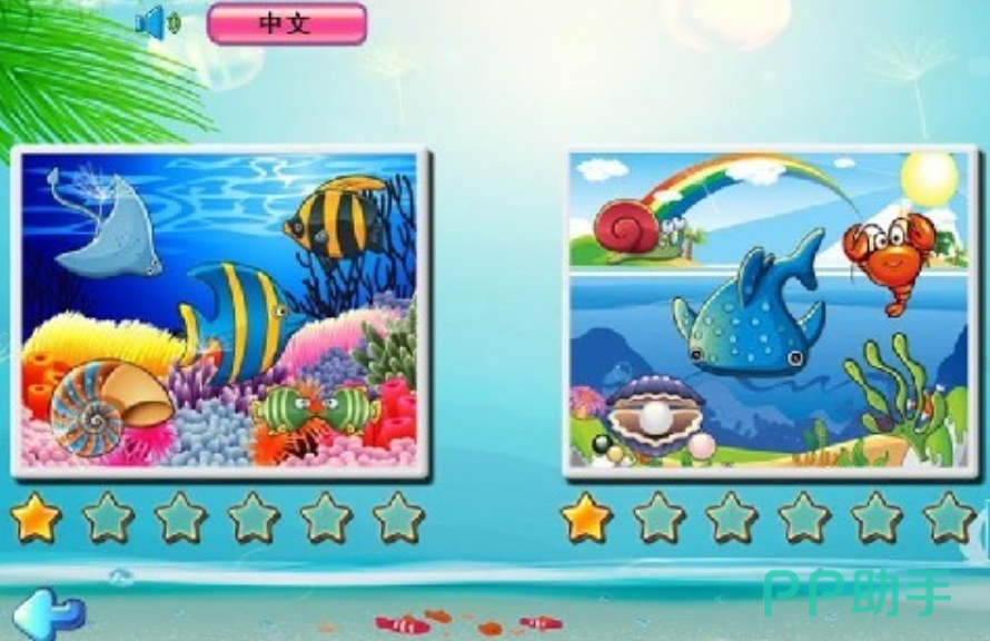游戏背景以海底为主,海底的故事始终是神秘莫测的,而对于莫测海底的好奇将提高小孩对于形状分析以及色彩辨认的能力,游戏中还拥有着唐诗三百首以及格林童话等各种童话故事,能够带宝宝体验到奇幻的文学世界,对于过小的小孩来说用来开启对世界的认知非常不错,而稍微大一点的孩子在其中也能够通过各种圆形卡片或者是闪卡进行识字识词,认识更多文字。
