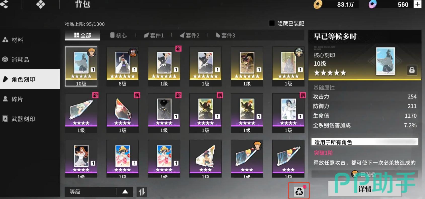对于闲置刻印,玩家有两种高效利用方式:一是直接分解获取基础材料;二是作为升级素材投入新刻印培养。二者提供的经验数值完全一致,可根据当前需求灵活选择路径。