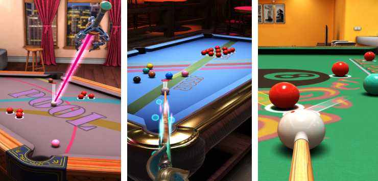 游戏重点还原了球体的真实感,优化了球体碰撞时的力度传递,当母球撞击目标球时,两者的滚动速度和力度都会实时变化,并让玩家看到球台上滑动时的摩擦力效果,游戏的对战模式非常多样,真人模式包含有排位赛和淘金赛等各种玩法,可以根据玩家的实力匹配对手并进行对战,获胜的玩家可以提升自身的段位。