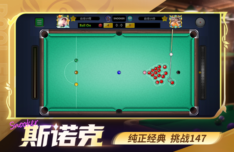 可以在游戏中真实的体验到斯诺克运动,各项规则和比赛玩法都是斯诺克相对应的,只要滑动屏幕,就可以在游戏中进行简单的操作,各种操作的玩法可以帮助玩家快速的了解游戏内容,并与现实中的台球进行结合,单人模式中可以轻松的体验各个击球关卡,在每个关卡中都有不同的目标进行完成,在限制的时间内完成清台,就可以顺利通关。