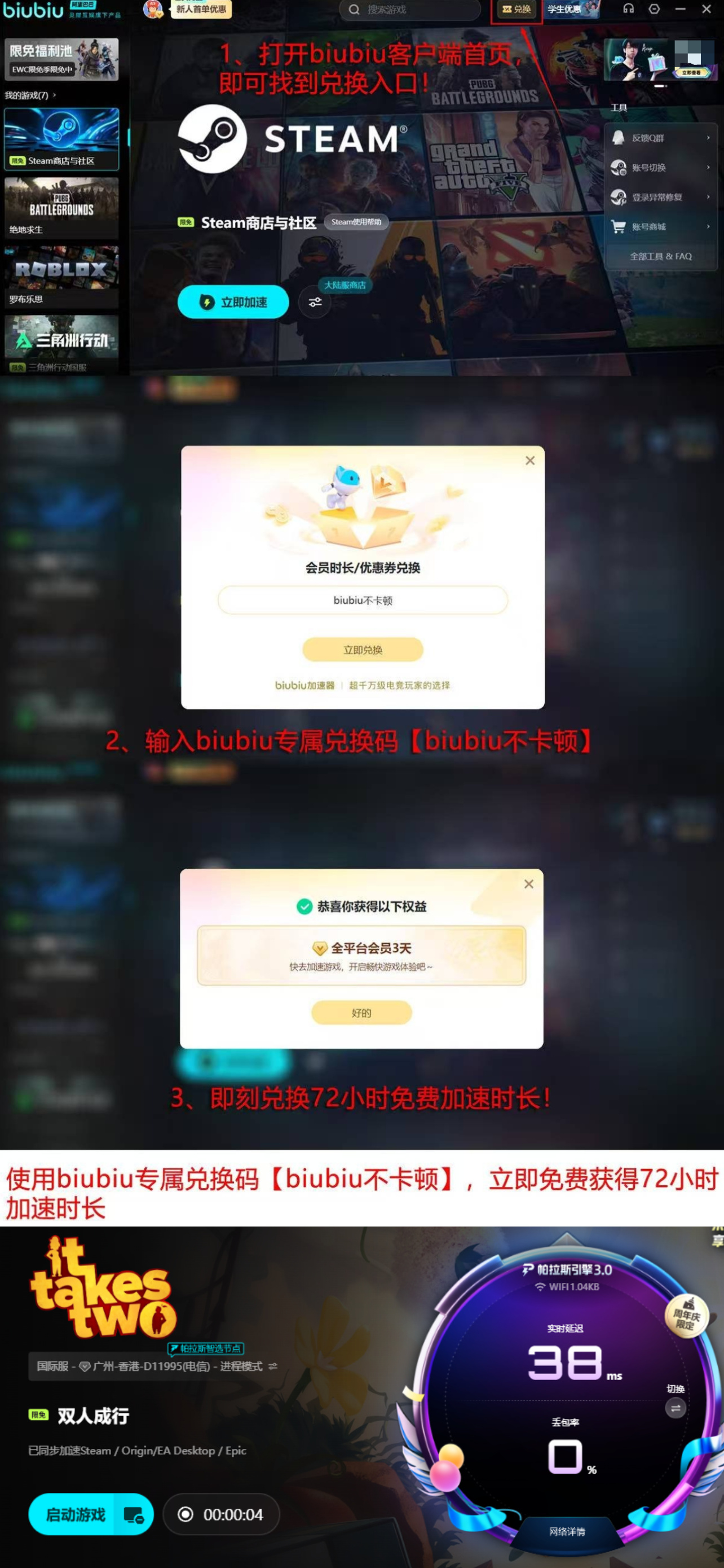 新注册用户登录后即可获得24小时全功能试用权限;若需进一步体验,平台还面向全体用户开放为期三天的深度体验通道,激活口令为【biubiu不卡顿】。