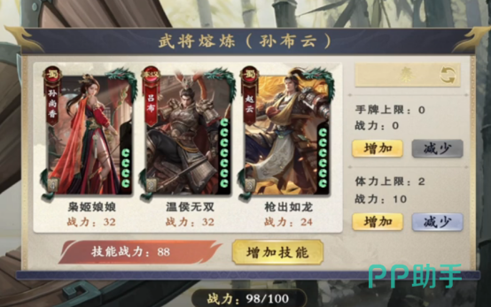还要对基础属性进行调整,手牌上限与体力上限的具体设定会直接占用具体的战力,至少设为4点。在使用的过程当中也有相应的限制,只能在自定义房间模式当中使用基础模式,如果选择的是基础模式,那么是禁止上场的。玩家只有详细了解这样的特色规则,合理分配战力及相应的技能选择,才能够正确探索熔炼武将的技能和相应的系统。
