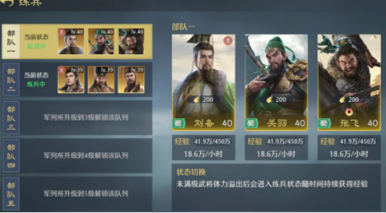 拆迁队在使用时更加注重的就是养成,因此呢就需通过参与战斗的方式赢取大量的经验值,从而提升整体的效率。每个部队之间都有不同的武将类型,只要获得相应的经验值之后,就可采取单队出征的模式,对于其他流派都会造成较大的影响,尤其是将所有体力值全部集中之后,就可迅速攻击野外流寇。在刚刚开局之后,尽可能先不要使用此部队,而是优先将大量的资源,或者是各种武将全部集结,积累大量的能量或者是资源之后,才可在占领中立营地的时候发挥出极高的效果。