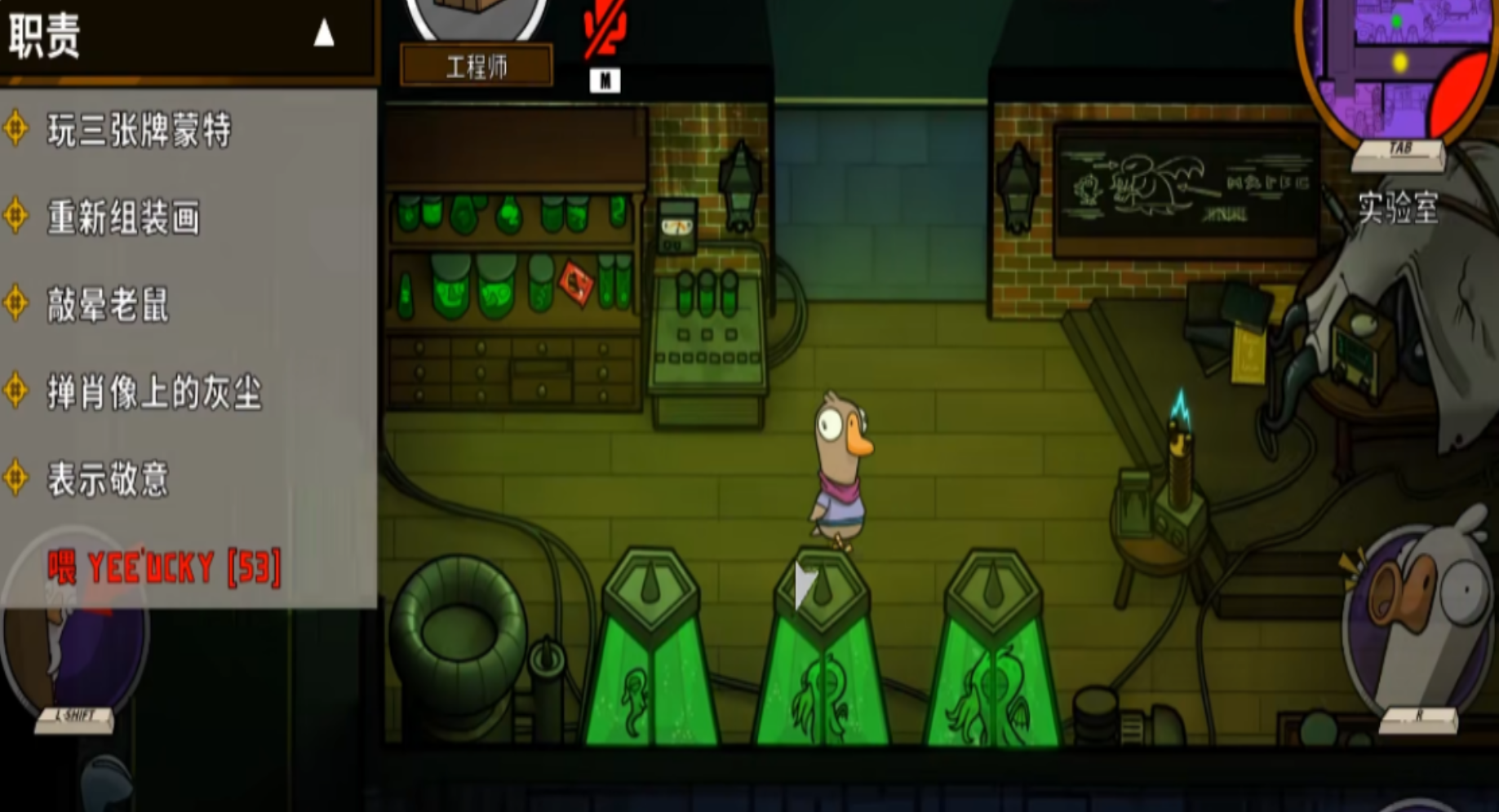 要说工程师其实还有一个技能,那就是合理的利用管道跟藏匿的地点。要说这个系统,其实跟鸭子阵营的系统往往有很大的区别,毕竟工程师的管道冷却的时间要比鸭子的管道系统冷却时间少很多,并且能够直接进入到盔甲,衣柜,马桶等等特殊的地方。在这里的话,玩家一旦体验工程师的时候,可以借助管道的视角来判断具体的行为。此时好人就可以直接完成任务,而对于鸭子来说,他们往往会观察,或者说直接破坏。