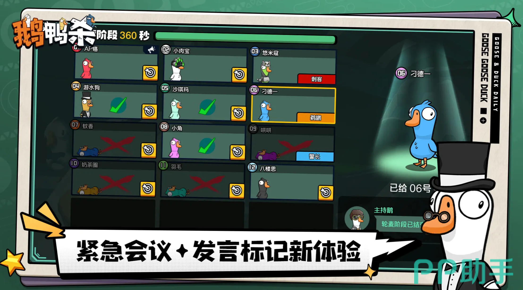 在鹅鸭杀手游的多阵营对抗体系中,科学家是大鹅阵营的关键功能性角色。其定位并非直接参与冲突对抗,而是以信息收集、行为分析与证据固化为核心能力支撑团队推理决策。该角色不具备攻击或自保技能,但拥有不可替代的情报价值——所有技能均围绕“提升真相识别效率”这一目标设计。