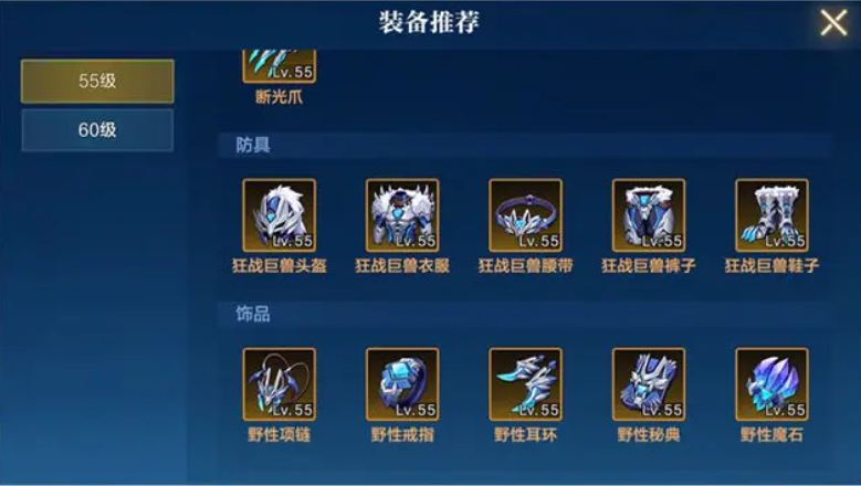 需特别注意:55级橙色装备分为史诗1与史诗2两个层级,仅史诗品质装备具备套装属性。标准套装为五件套结构,集齐其中任意四件即可激活全部套装效果。左右槽分别对应防具套与饰品套,二者均以提升整体伤害输出为核心功能;而魔石与秘典所附加的会心率、会心伤害等词条,将进一步放大爆发能力。