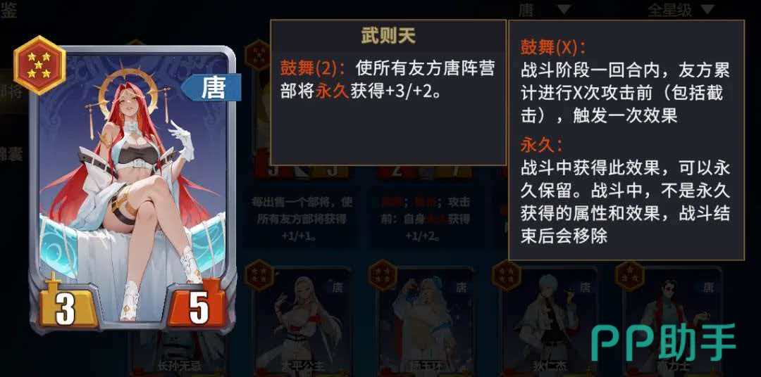 武则天是整套体系的基石角色,其核心价值在于“鼓舞”效果的多重叠加与全域覆盖。她不仅能对全队施加属性增益,还可通过技能循环持续刷新鼓舞层数,显著提升攻击、暴击、防御与免控能力。建议优先完成武则天的碎片收集与星级突破,确保其在队伍中始终处于高练度状态,从而最大化鼓舞收益。