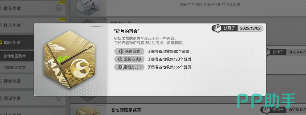 各地图产出资源具有明确倾向性,可通过【地区奖励】界面实时查看当前区域剩余宝箱数与未采集醚质资源点数量。其中,谷地侧重提供新手友好型资源,如基础源石技艺训练包与通用经验晶体;武陵区域集中产出科技类材料(如高纯度导能合金)及技能专精模块;侵蚀区域则为稀有矿石(如蚀刻晶簇、湮灭矿核)的主要来源地。