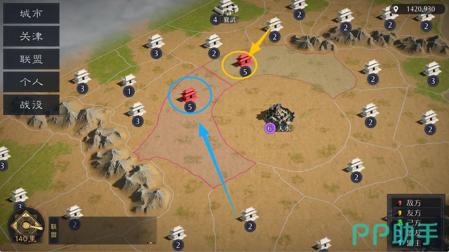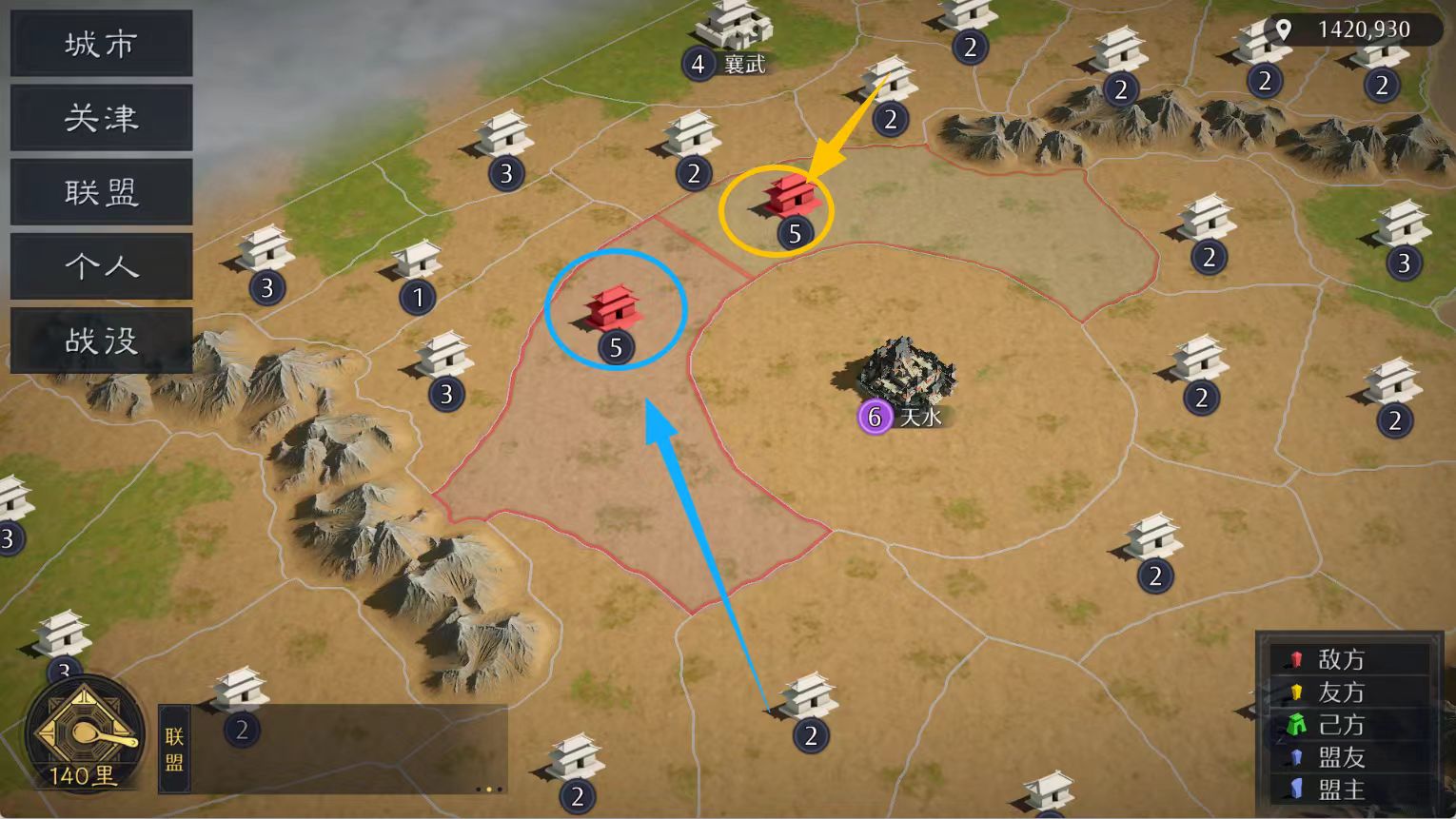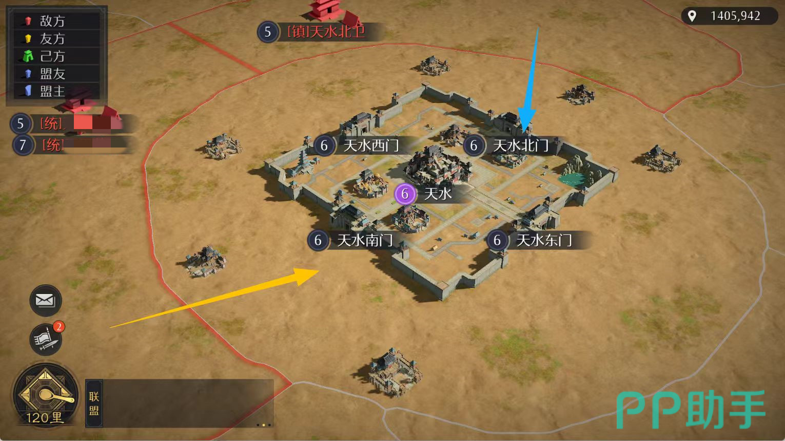 迁城机制是活动关键变量之一。联盟成员仅可在卫城划定区域内快速建造迁城营地,且活动全程禁止通过新手迁城功能抵达州府或卫城范围。活动中存在两类核心功能性建筑:督军营与戍军营。二者均支持主动进攻占领——督军营位于州府境内,被占领后可为所属联盟提供持续战斗属性加成;戍军营则具备自动反击机制,占领后将定时向邻近敌方部队发起攻击。需特别注意:州府首次被成功占领后,这两处特殊建筑将永久移除,不可重建。