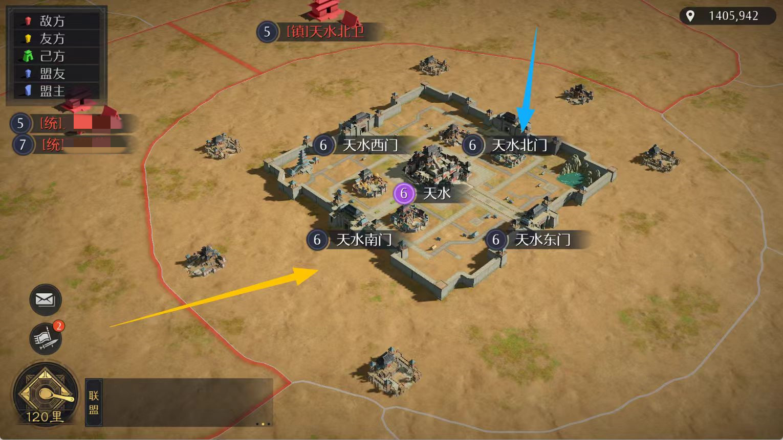因上述建筑对战力具有显著放大效应,实际战况中往往成为双方优先争夺焦点。战术执行层面设有明确时间节点:活动开启6小时后允许对州府发起宣战(无需消耗宣战令),24小时后方可对敌方卫城宣战(所需宣战令数量减半)。联盟指挥层需据此规划兵力调度节奏,在保障己方军营控制权的同时,选择距离本方堡垒更近的城门作为主攻方向,既可最大化利用建筑增益效果,又能有效规避敌方侧翼袭扰。