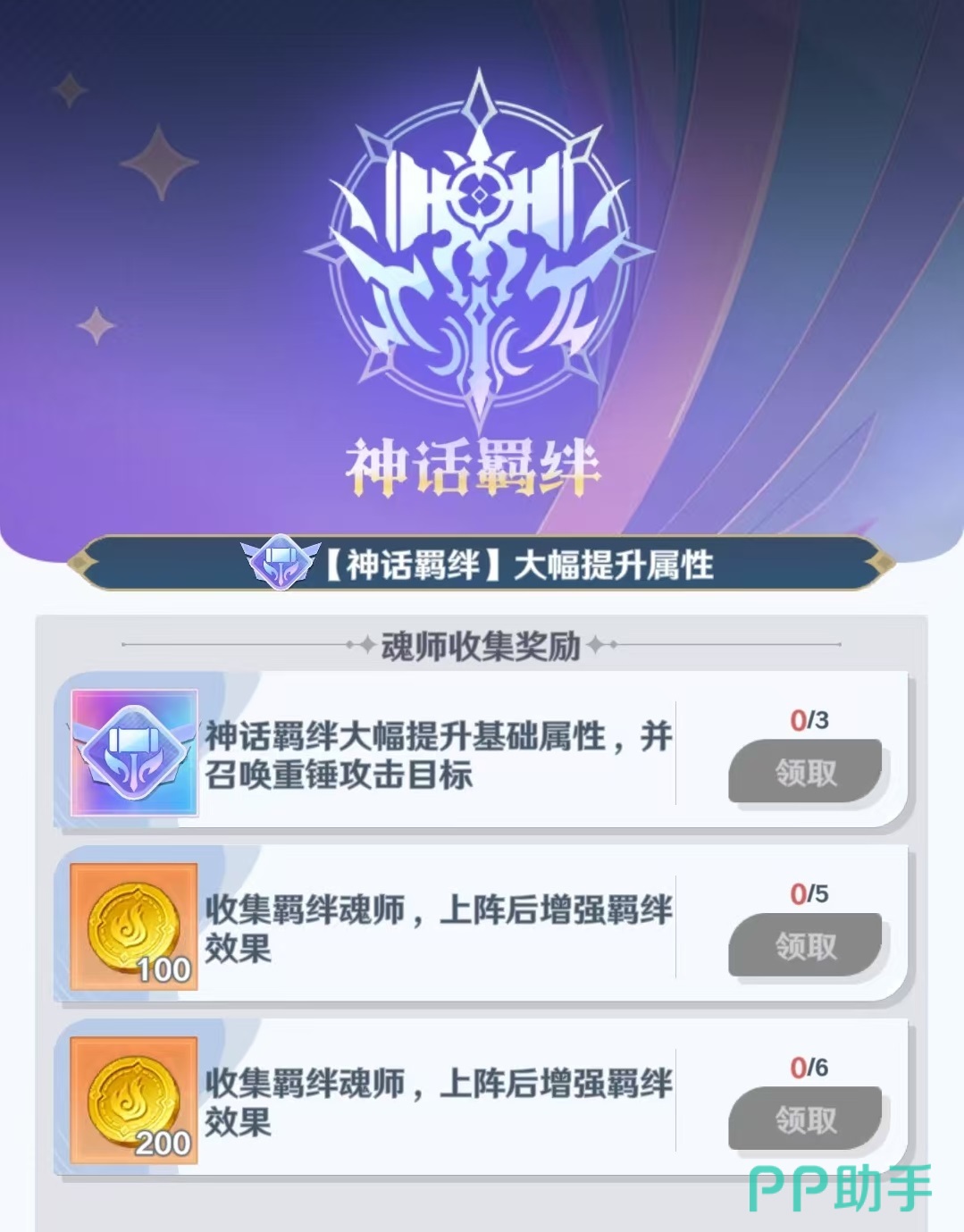 【神话羁绊】:需上阵3/5/7名神话品质魂师。激活后,所有神话魂师获得最高15%伤害提升与15%伤害减免;同时每8秒对周围敌人发动一次范围伤害。该羁绊强调极致输出与生存能力,是高配阵容的首选,对角色品质要求严格。