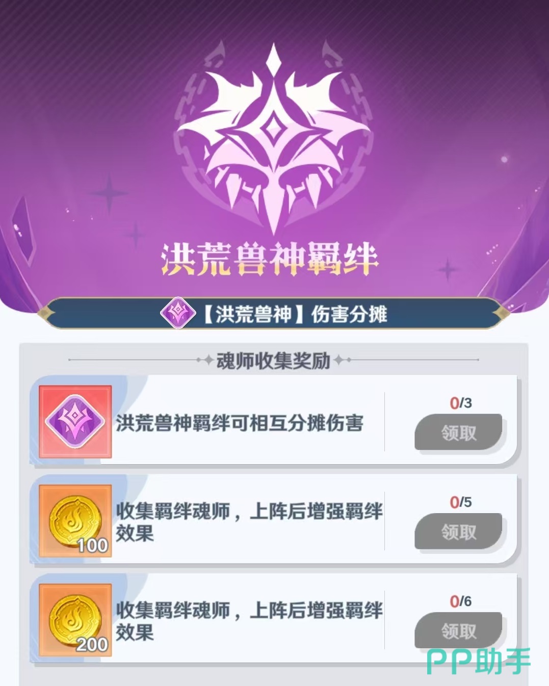 【洪荒兽神羁绊】:触发后,所有洪荒兽神魂师之间共享所受伤害,并额外提升全队减伤比例。该羁绊聚焦防御维度,特别适合应对高爆发Boss或需要长时间抗压的PVE挑战场景。