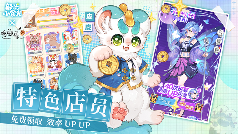 本次联动出现的神兽角色各有特色,四不像、貔貅、兔爷、金角银角等熟悉的角色将以“店员”或者特殊伙伴的形式出现。继承原作的外貌特征,有专属技能、个性化台词,工作过程中会出现有趣的事情。玩家在经营的过程中会发现这些神兽并不是单纯的数值工具,而是会参与到日常的经营当中,制造笑点,缓解经营节奏带来的疲劳感。